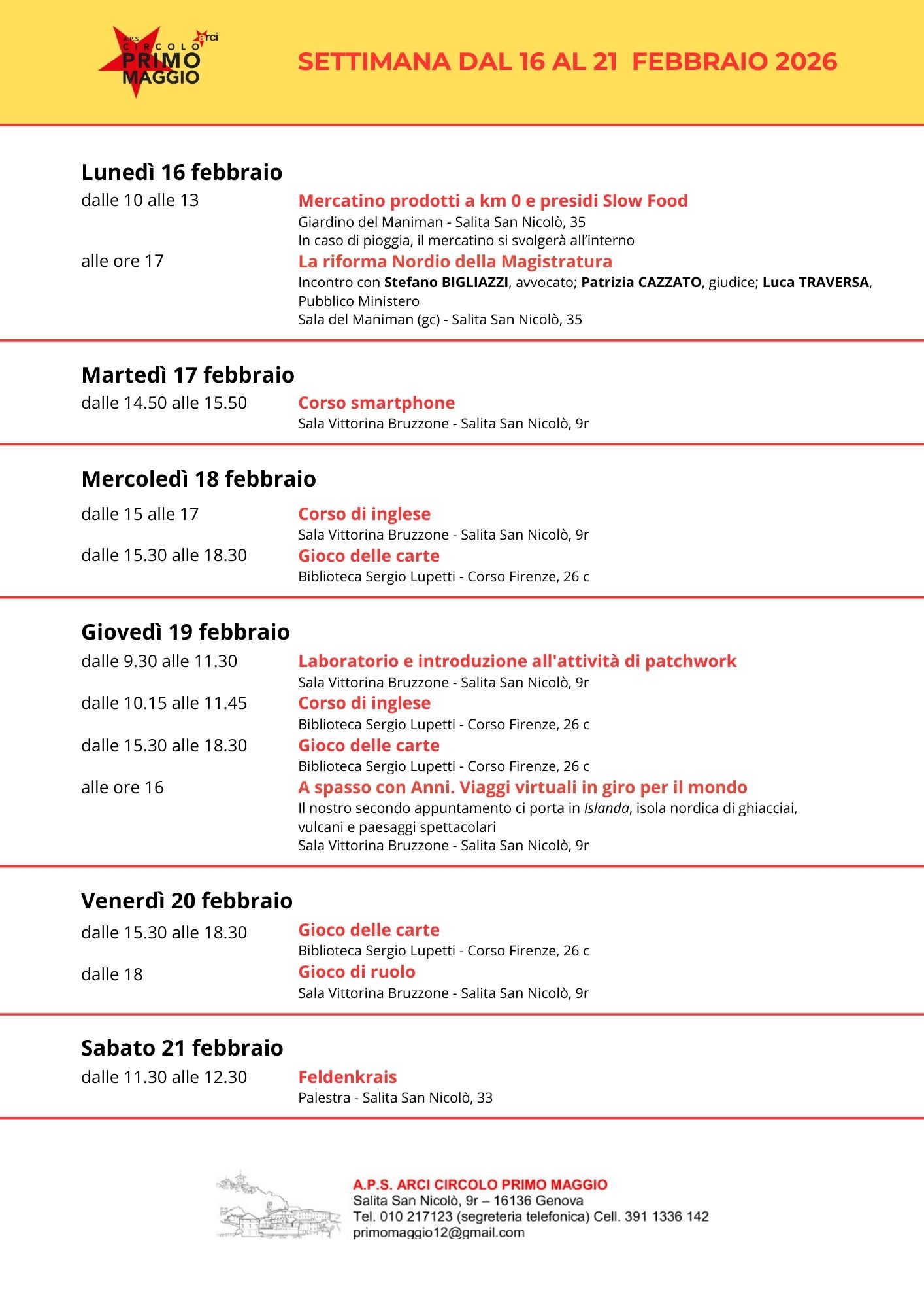 Programma del mese di febbraio 2026