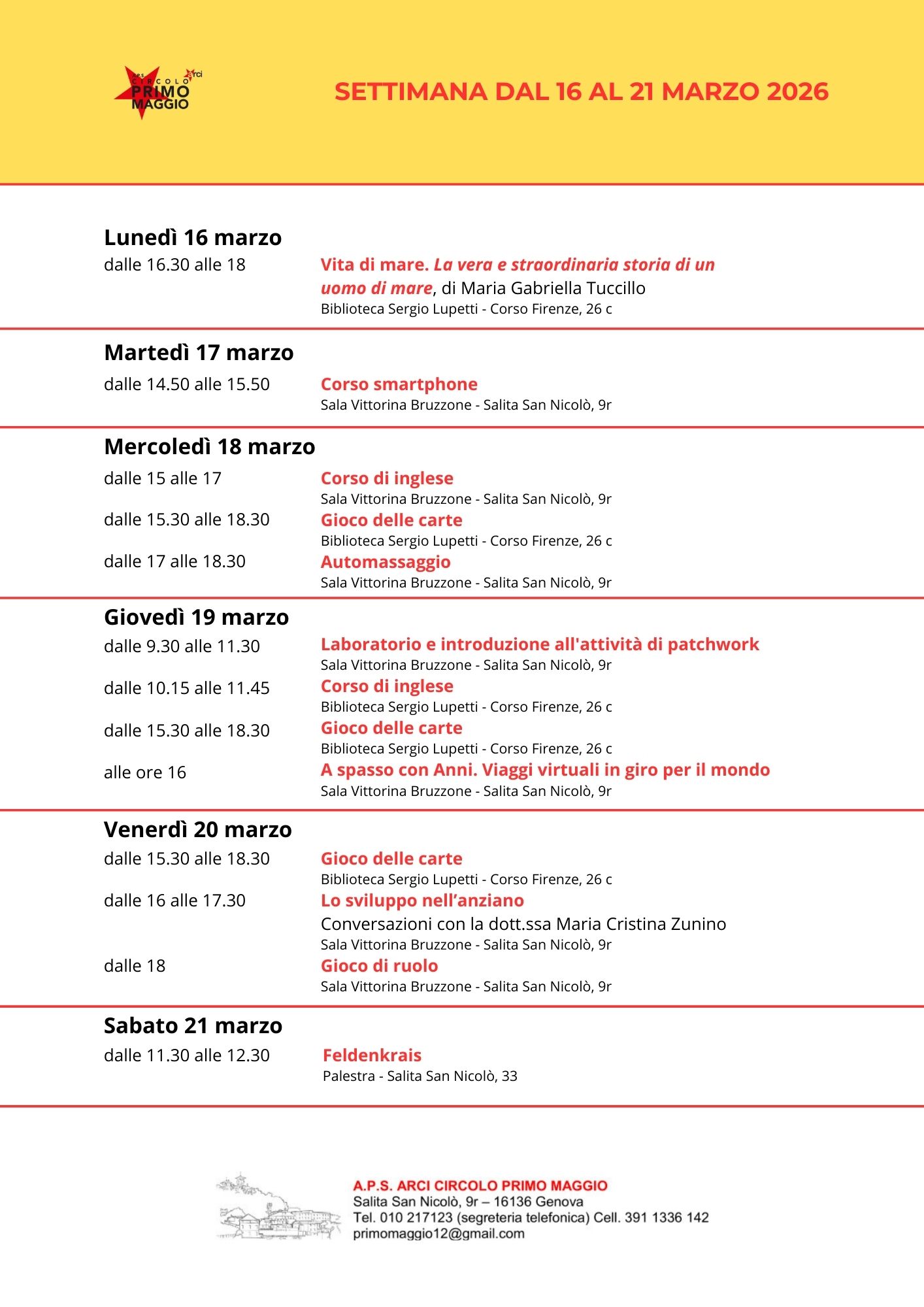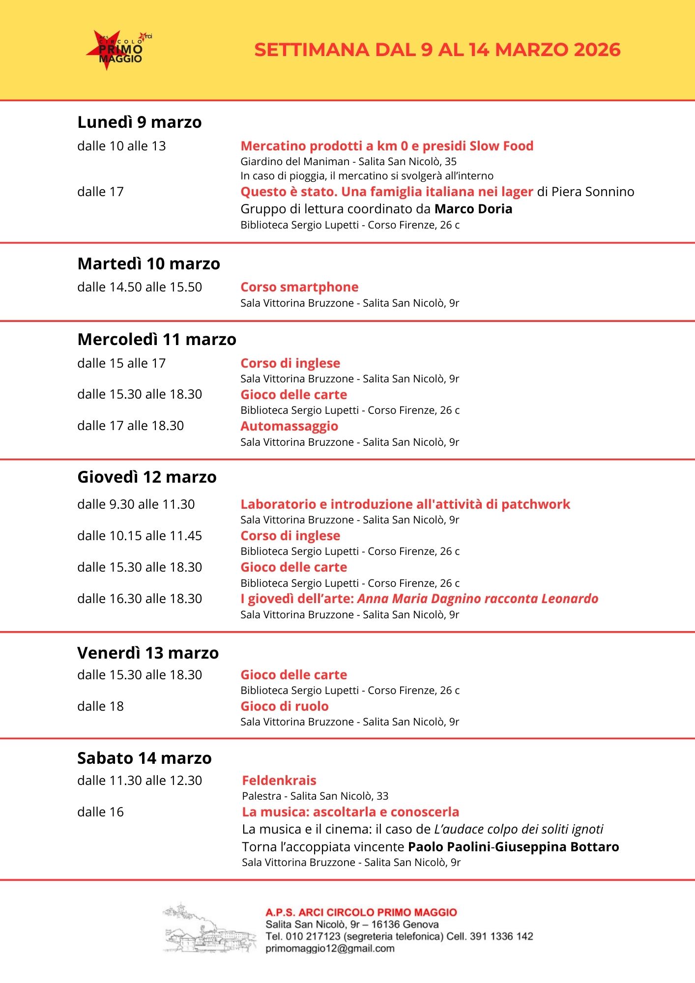Programma del mese di marzo 2026