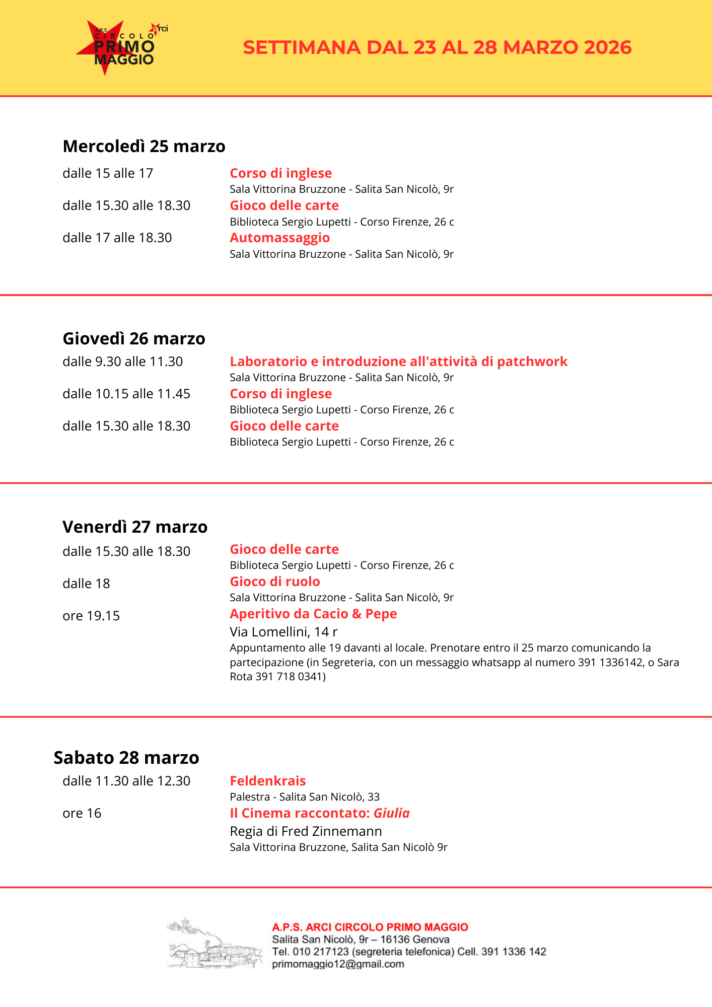 Programma del mese di marzo 2026