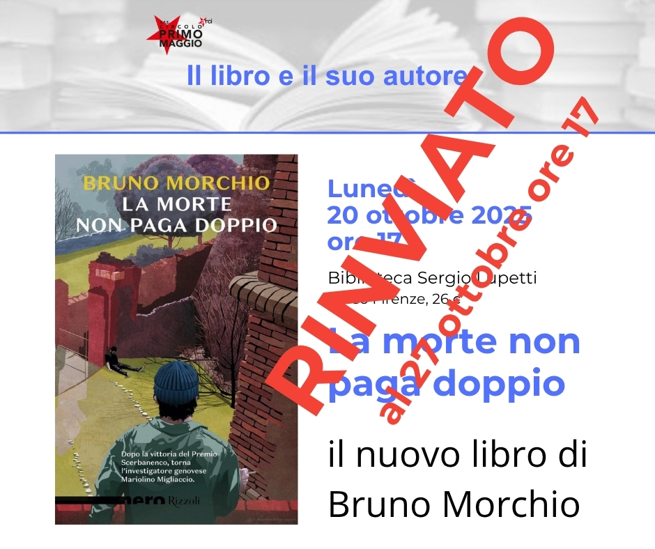 Siamo spiacenti di comunicare che a causa di un malanno di stagione Bruno Morchio non potrà essere con noi come previsto.